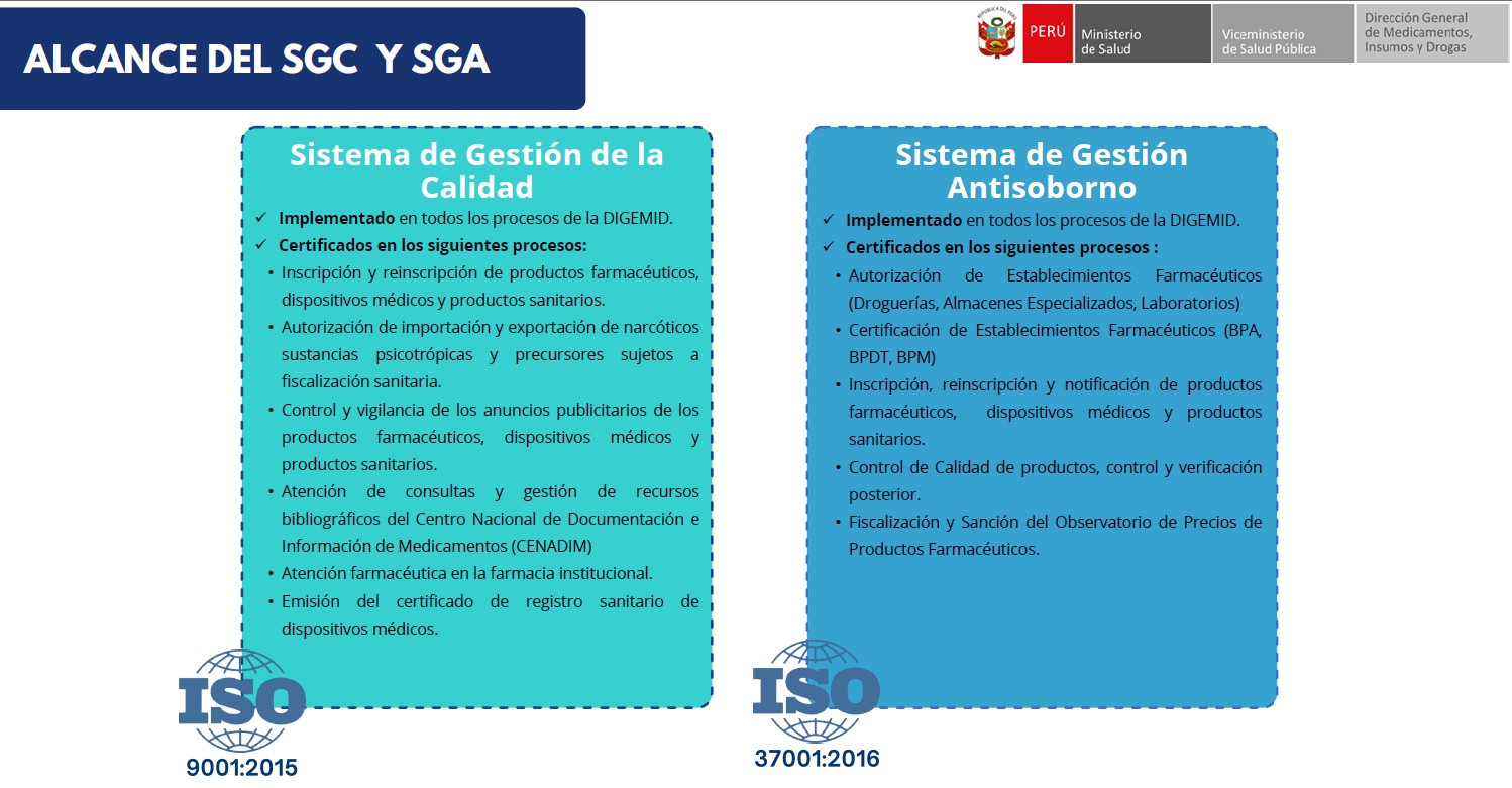 - Mantener o Ampliar la certificación ISO a otras actividades de la DIGEMID